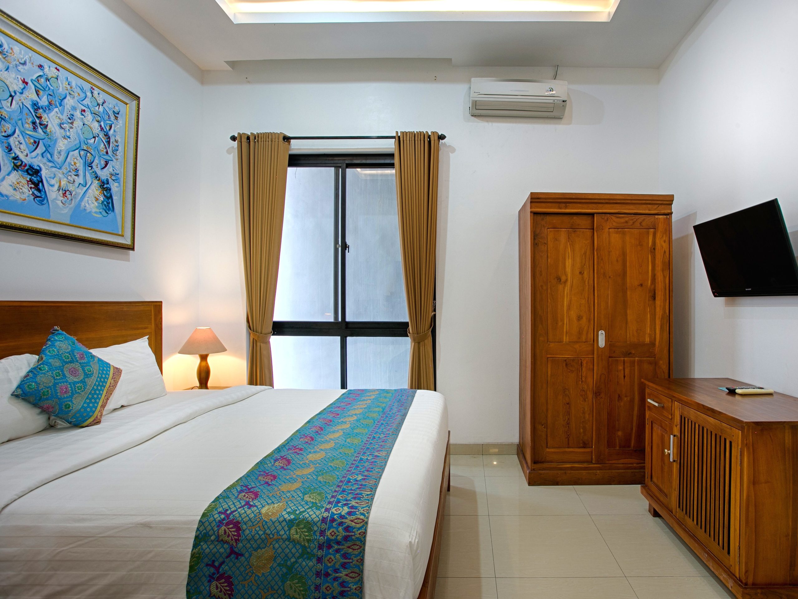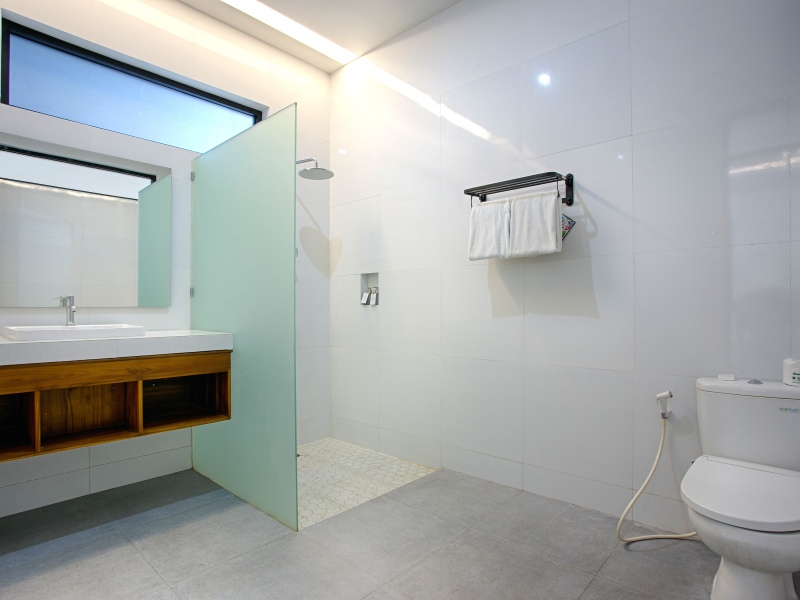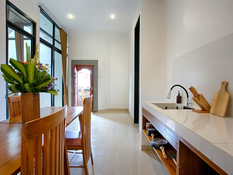 If you’re traveling with a group of friends, family, or people alike and looking for a place to share, this is the type of accommodation for you in Canggu. It’s basically 3 individual rooms connected via the living room in the middle of the 3 rooms. 1 room has a private bathroom and the other 2 rooms share a bathroom which is located in the living area. Each room is 25sqm, decorated with wooden furniture providing your holiday essentials. These rooms have a queen size bed (180×200), 32-inch Flat LED TV.
